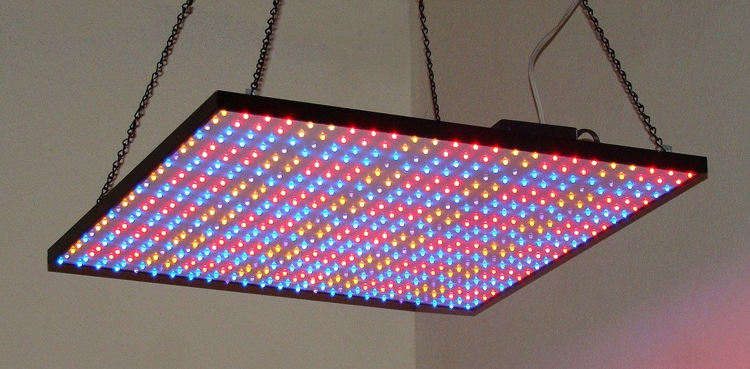 The light on the left is the actual light when turned off, the light on the right is a different lower power light to show you what it looks like when turned on. We are unable to show you the actual light when turned on because it is so bright that it overwhelms the camera. The concept of the FULL SPECTRUM LED GROW LIGHT is simple – it uses highly efficient LED’s, these LED’s uses only the exact light spectrums required for photosynthesis, and uses wide angle directional bulbs. The LED is one of the most efficient light sources in the world (lumens per watt). By using only the spectrum required, no light is wasted. The directional LED’s ensure 100% of the light is pointed downward for ultimate growth potential – there is no need for reflective materials to direct the light. Benefits include: