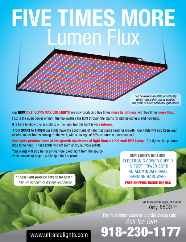 Pricing : We stock a 24" X 24" Grow Light, but custom sizes and configurations are available, please contact us for options and pricing. Stock 24" X 24" Grow Light which covers approx. 48" X 48" area or 16 square feet coverage of usable light. Do you have questions? Call TOM today 918-230-1177 United States *Free shipping on standard 24" x 24" grow lights to U.S. customers only. Add $30.00 for shipments outside the United States. MANUFACTURER DIRECT, NO MIDDLEMAN, THIS ENSURES THE LOWEST PRICE POSSIBLE! We respect your privacy !!! If you want, we can ship your order to a UPS depot near you where you can go and pick it up. Just ask us or enter it into the comments section of the shopping cart. *Not intended for outdoor use.